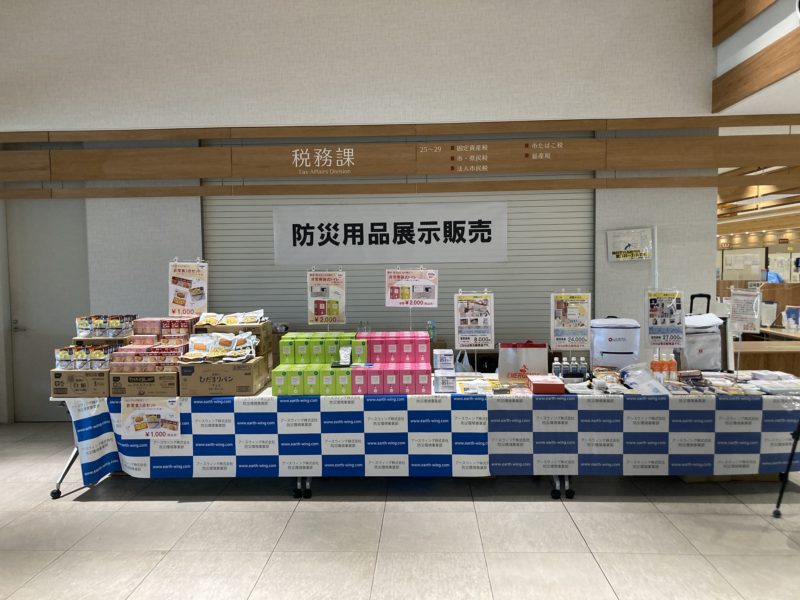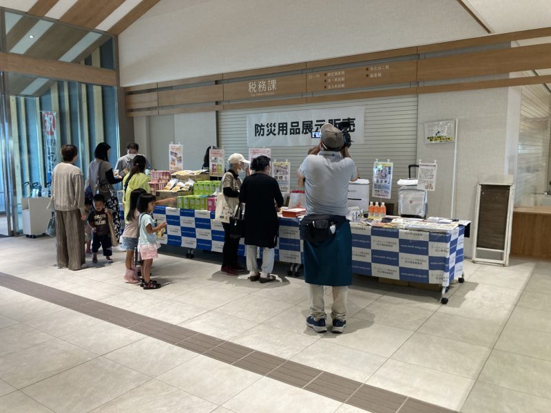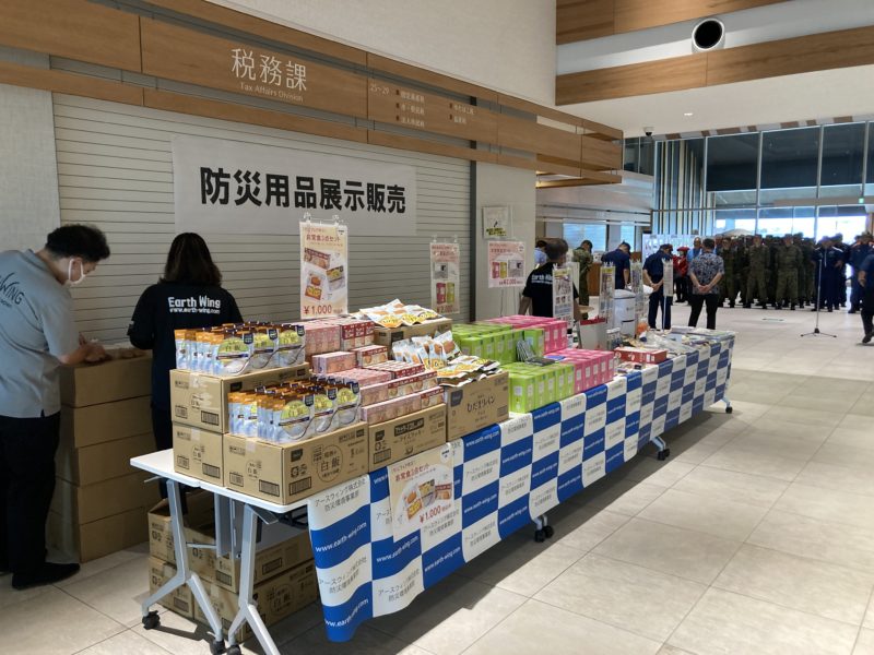 弊社では、石垣市様より依頼を受けて今回初めて一般市民向けに防災用品の即売コーナーを設け、非常食や簡易トイレ、避難時に必要な物資を防災リュックと一緒に販売させて頂きました。