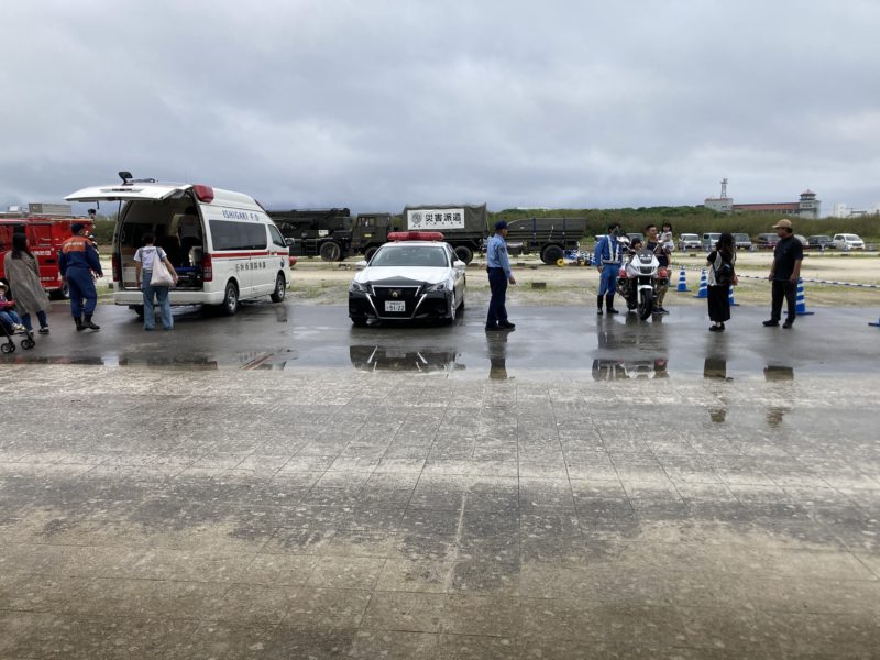 展示では消防、自衛隊、警察などが車両の試乗体験やドローン操作や重機車両の展示などが行われ、どのコーナーも列ができていました。